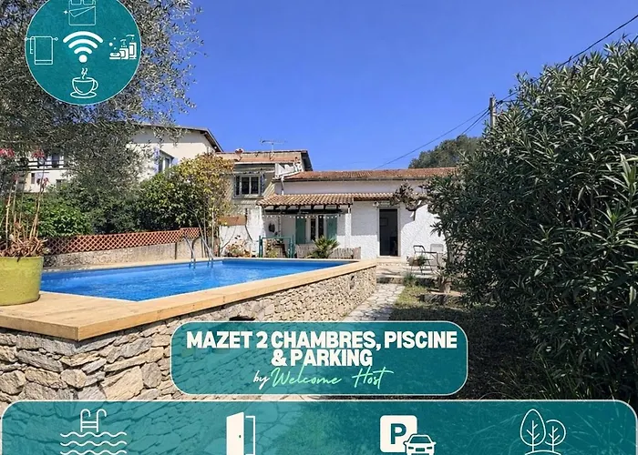 Situated 3.2 km from the Place de l'Horloge, the hotel is 2.9 km from the Roman Castellum Aquae Water Tower. The Mazet Suzie, 2 Chambres, Piscine & Parking Nimes offers proximity to such natural sights as the 17th - century park "Fountain Gardens" (3.6 km) and the so - called Temple of Diana (3.7 km). The nearby cultural experience includes the preserved Roman Arena of Nimes Amphitheater, which is nearly a 15-minute drive away. Petunias bus stop, offering a direct link to the city attractions and main places, is right around the corner from the accommodation.